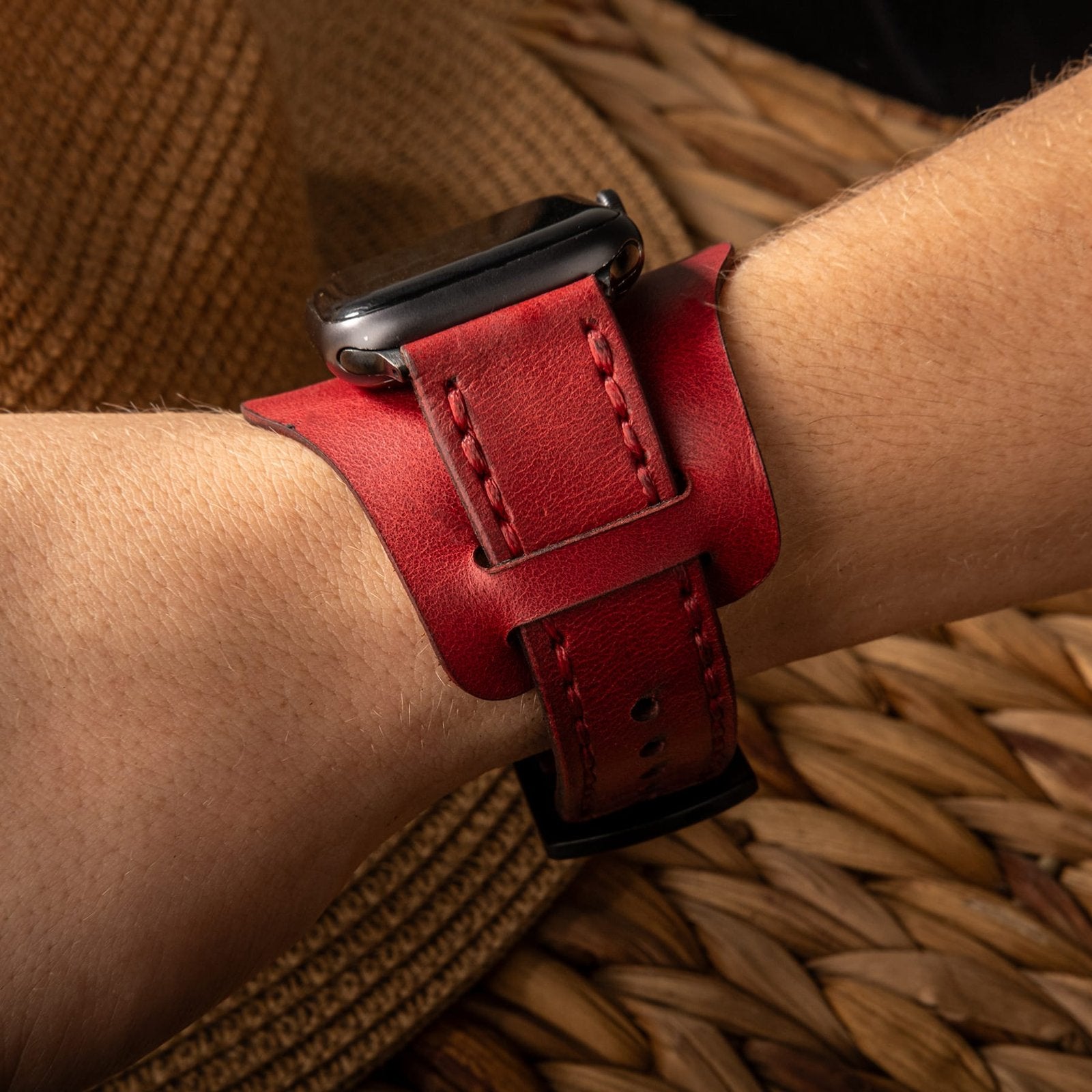 Not: Bund Çift Katlı Apple Watch Deri Kayış - Kırmızı tamamen el yapımı olduğu için görselden ufak farklılıklar içerebilir.