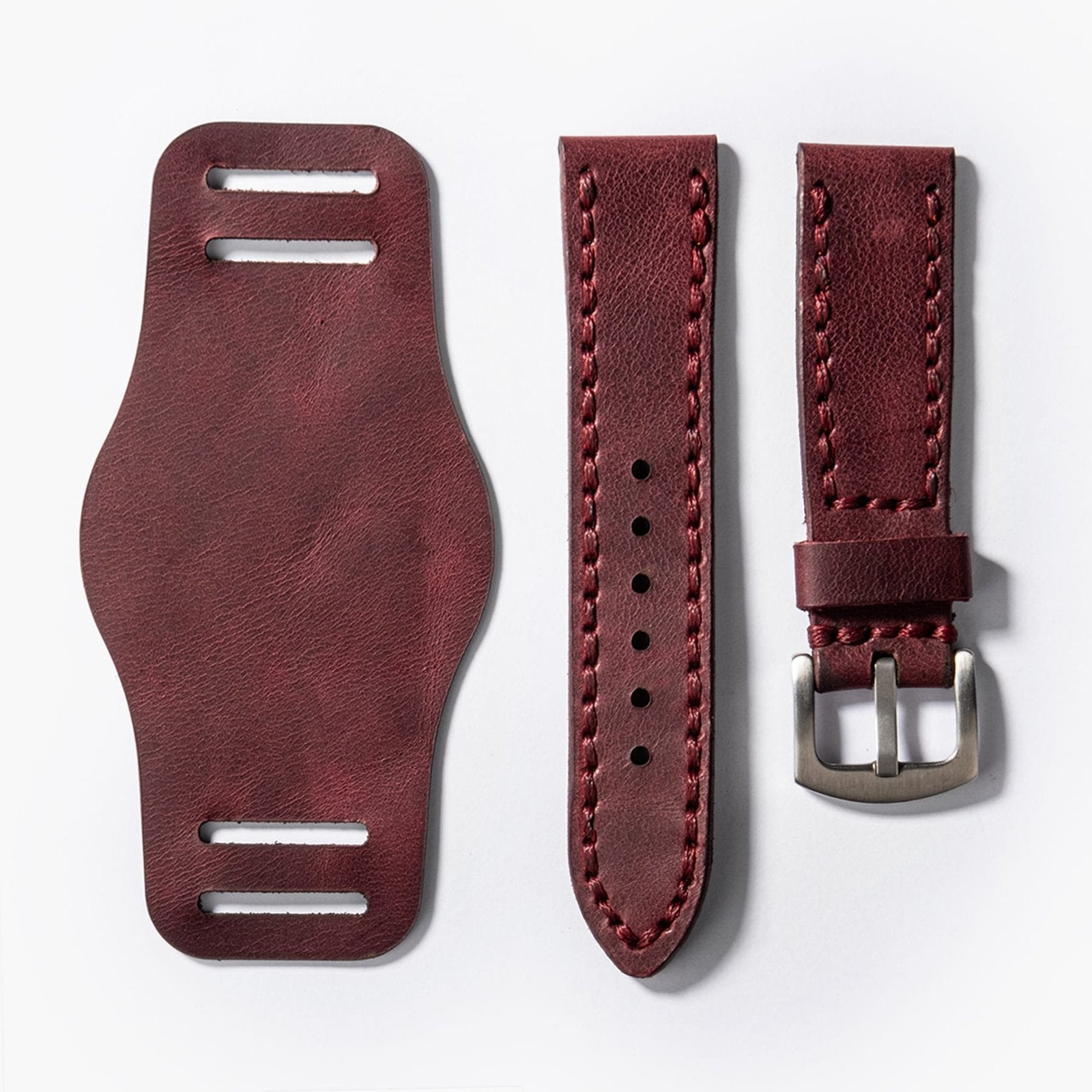 Not: Bund Çift Katlı Deri Kayış - Mürdüm tamamen el yapımı olduğu için görselden ufak farklılıklar içerebilir. Ayrıca, görsellerde kullanılan saat fiyata dahil değildir.