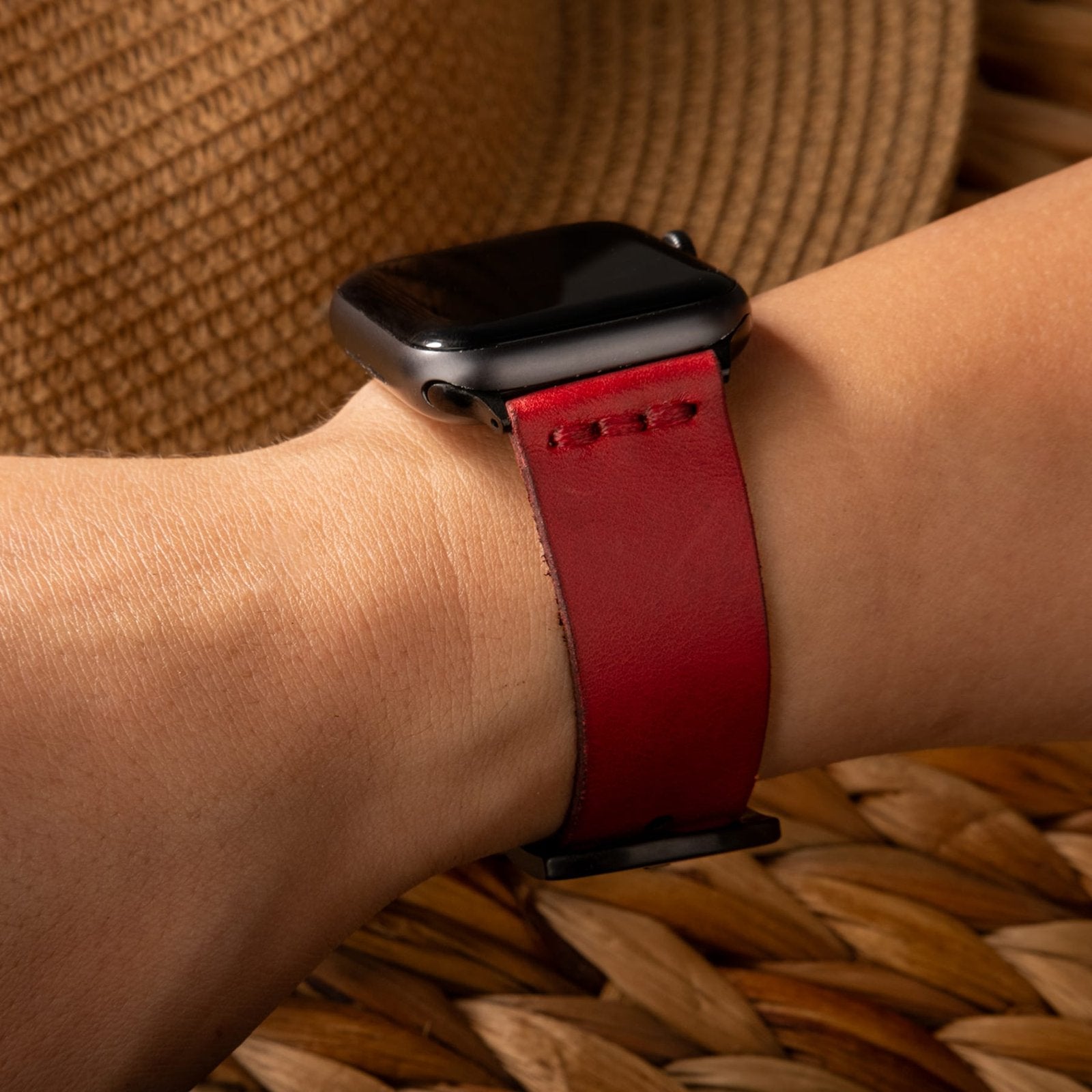 Tek Katlı Deri Apple Watch Kayışı Kırmızı